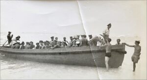 Above Returning from a sports afternoon, staged ashore on Morotai