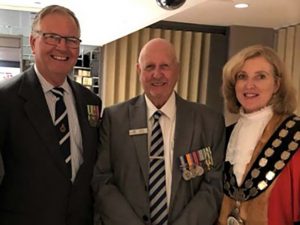David Michael Garry Brigden Mayor Gail Giles-Gidney of Willoughby Council 21 April 2018 at Chatswood RSL function Passage to Pusan