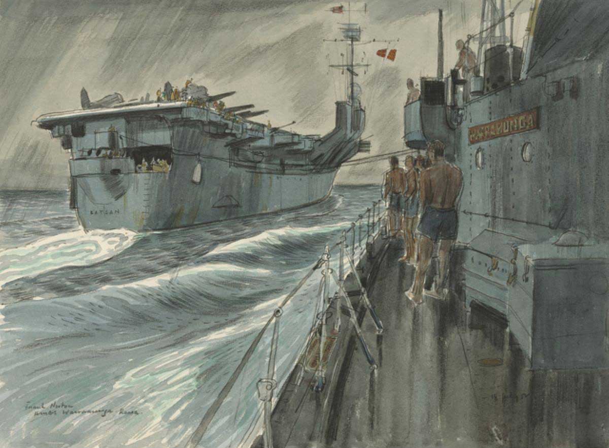 ![Near miss, HMAS Wagga [Milne Bay] by Dennis Adams](https://navyhistory.au/wp-content/uploads/Near-miss-HMAS-Wagga-Miln-Bay-Adams-Dennis-1.jpg)