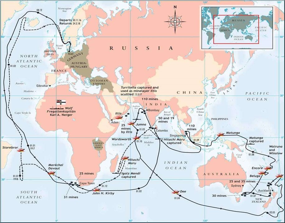 By March 1917 Wolf was beginning to generate a great deal of consternation with the Allied governments. The Official History of the Great War: Naval Operations, Vol IV by Henry Newbolt, states that there was no definite intelligence on the Wolf until early March. And he records that in March of 1917 there were approximately 24 British, Australian, French and Japanese naval vessels deployed throughout the Indian Ocean on patrol and escort duties in response to the threat of the raider.