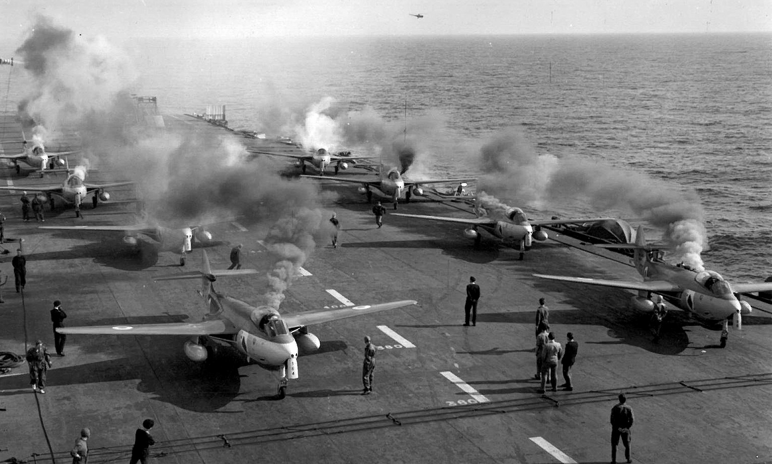 10 Hawker Sea Hawk single seat, jet fighters starting up in HMS Eagle circa 1953-54 Kingsley Perry · Feb 15, 2026 ·