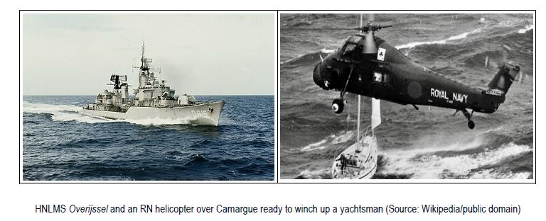 Naturally, the RN was heavily involved with HM Ships Broadsword, Anglesey and Scylla participating in the rescue mission as well as RFA Tidespring. Additionally, the Dutch ship HNLMS Overijssel, which was the designated Duty Guard Ship for the race, played an important role.